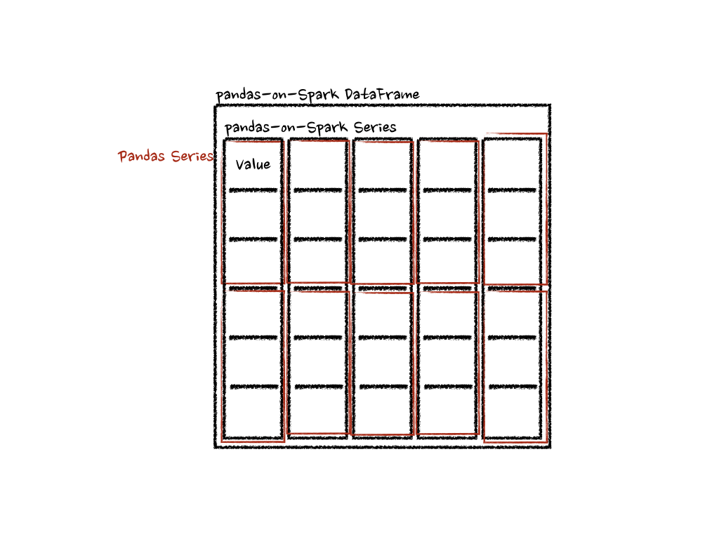 Under the hood, each batch of pandas-on-Spark Series is split to multiple pandas Series, and each function computes on that as below: